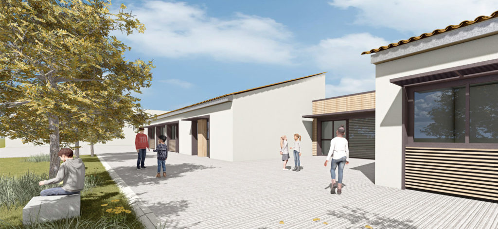 Études pour la réalisation d’une école à l’ITEP La Panouse. Le projet définit deux espaces d’enseignement en fonction des âges des élèves ainsi qu’une zone commune destinée aux enseignants.