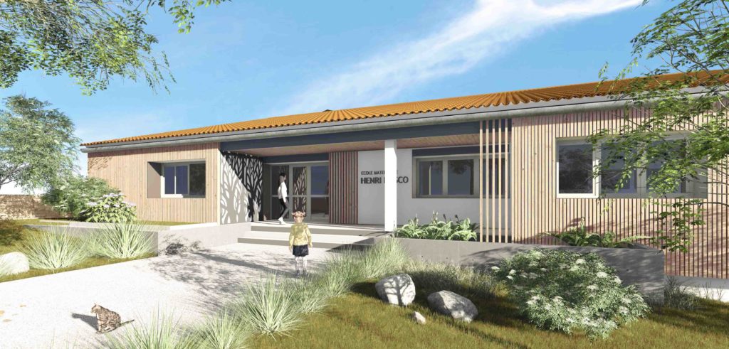 Extension, réhabilitation et mise en accessibilité pour les personnes à mobilité réduite du centre d’accueil pour enfants. Traitement du jardin extérieur.